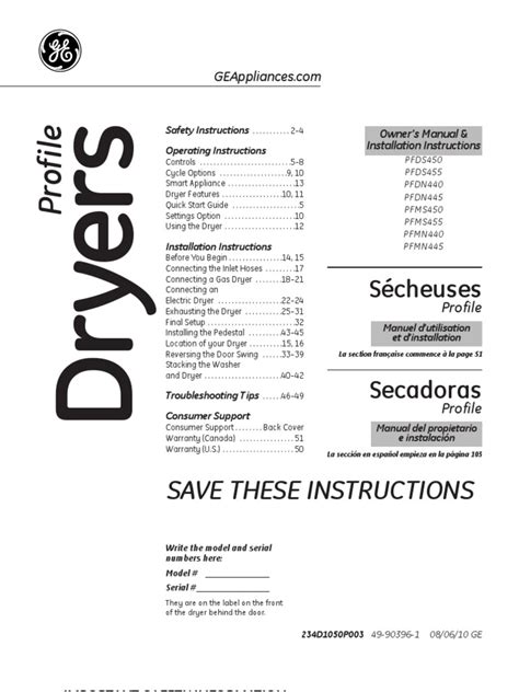 Online PDF GE PROFILE DRYER MANUAL Paperback ManyBooks